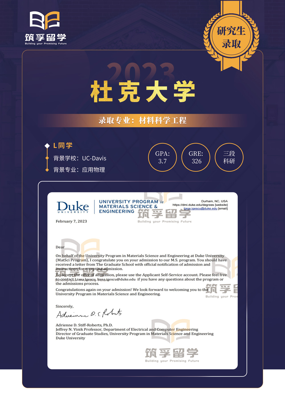 审查过成千上万份申请,非常了解招生要求,曾指导学生进入哈佛大学、麻省理工大学、斯坦福大学、芝加哥大学、约翰霍普金斯大学、加州理工学院、圣母大学、加州大学戴维斯分校、伦敦大学学院等名校。